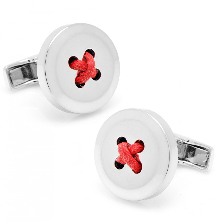 These button cufflinks are approximately 3/4 inches in diameter with a fun polyester red thread and engravable whale back closure. The round design is clean and colorful with enough flare to add a pop to your button-up while maintaining a sense of simplicity at the same time. Add these buttons to your button-up for a playfully delightful yet sensibly simple look.