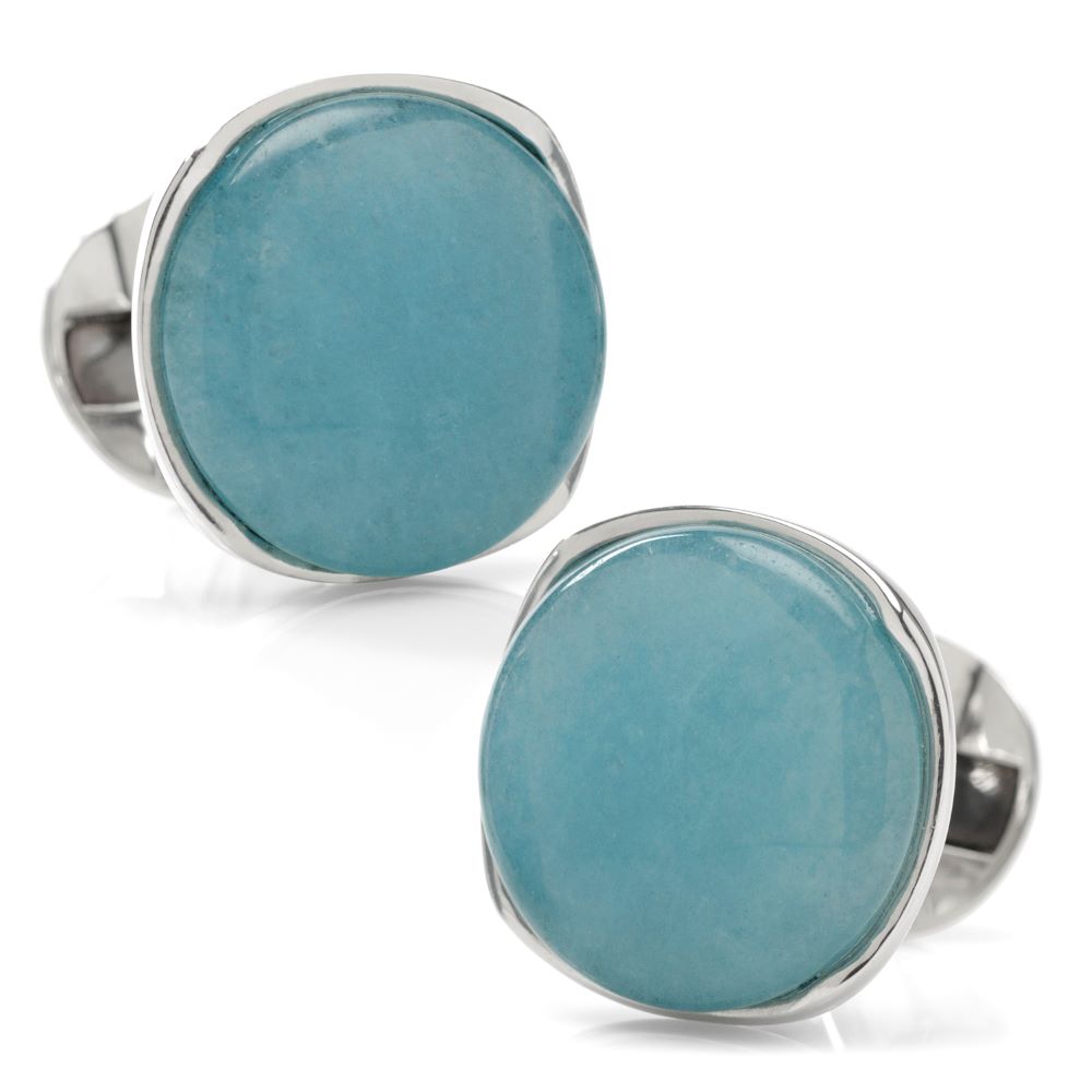 Elevate your style with these aquamarine jade cufflinks. Wear them as an accent color to make your outfit pop. Made of a dyed Jade gem on a Sterling Silver base.