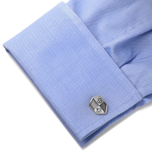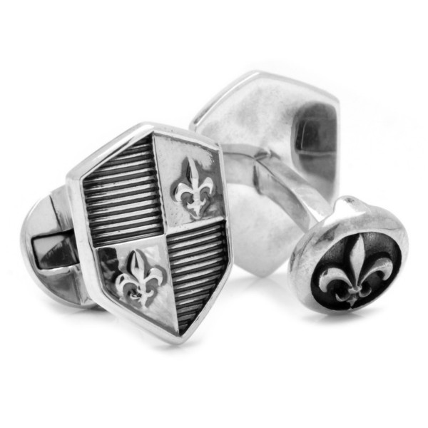 Approximately 3/4" x 5/8". Sterling silver. Round logo swivel closure.