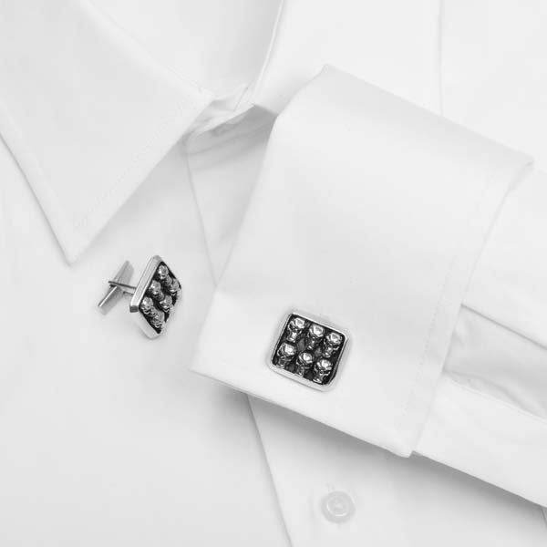 These Sterling Silver Six Skull Face Cufflinks are a hard-edged addition to the CLM brand. The six gleaming skulls protrude ever so slightly beyond the silver rimmed square encasing, and the background is imbued with darkened sterling silver. These cufflinks give off a rocker vibe and are perfect for musicians, death metal enthusiasts, and lovers of the darker side of life. These cufflinks have the ability to transform your bland business or formal attire into an edgy, non-conformist statement that rings true to your own personal aesthetic. The best part about these cufflinks is that they are made using 30.4 grams (1.072 ounces) of sterling silver for the total pair. That is an immense amount of high quality silver that makes up these little cufflinks, so they are not for the faint of heart. Instead of buying those flimsy, lightweight cufflinks you see around, all CLM brand cufflinks are meticulously crafted with heavy, high quality silver.