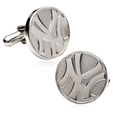 These Classic Yankees logo cufflinks in sterling silver. Offically licensed product of Major League Baseball. Back stamped with .925 mark of sterling silver. This set of finely crafted Sterling Silver New York Yankees Cufflinks is an officially licensed product of Major League Baseball. With a silhouette of the Bronx Bombers NY logo in white and blue on the cuff side and a silver embossed image of the MLB logo on the backing, these Yankee Cufflinks are a wonderful gift for any true Yankees fan.