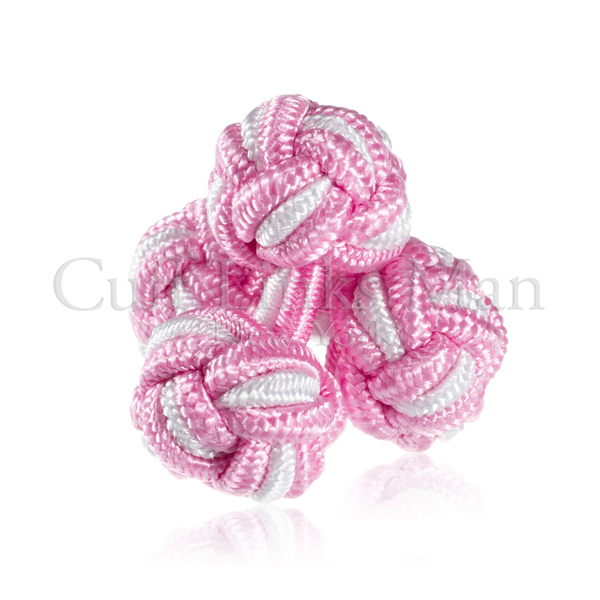 It is Strawberry & Cream Pink White silk-knotted cuff links. It is Hand woven, delicately knotted. Exquisite detail down to the intertwined fibers. Made from real silk. Standard size fit all. Silk Knots are packaged - up to three pairs in one presentation box. It is personalized designer cufflink available for men.