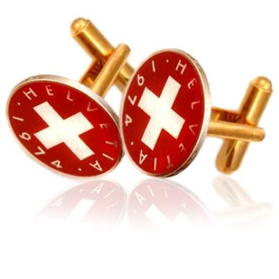 The flag of Switzerland consists of a red square with a bold, equilateral white cross in the center. The 2 Rappen coin shows the Swiss flag and coat of arms. You can add this stately cufflinks to your formal outfit for wedding parties and business meetings. Treat yourself to these gorgeous Swiss coin cufflinks and make a fashion statement no-one will forget!