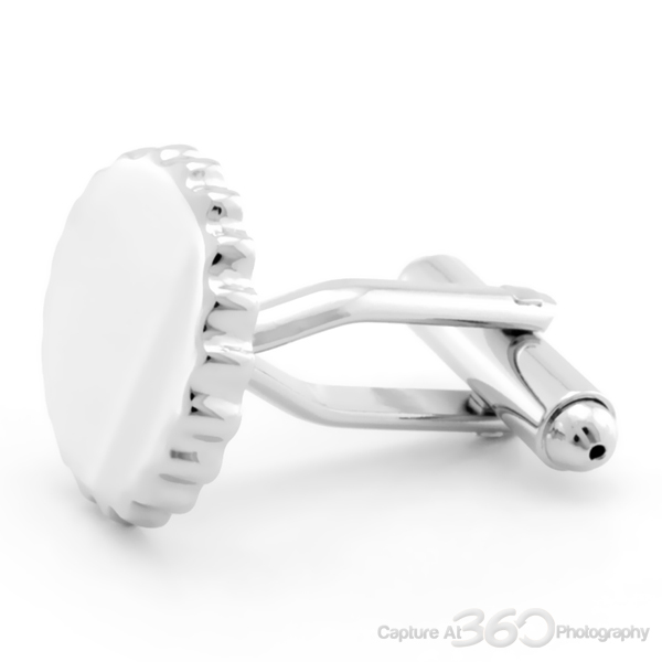 These Sylvia's Bottle Cap Cufflinks are a fun, playful, and quirky accessory to add to your collection. Featuring silver rhodium plating and a bullet back closure, these are sure to spice up any ensemble at the work place or dinner date. Don't keep your fashion sense all bottled up, express yourself openly with Sylvia's Bottle Cap Cufflinks.