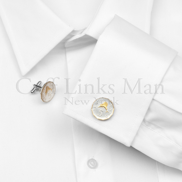This real coin from Tanzania, a little smaller than a U.S. quarter, is first layered in pure bright silver. Then, by hand, the figure is highlighted and brought to life with rich, pure 24K gold. The beauty of each coin cufflink is brought to life by the intricate detail of the swordfish at the center. You don’t have to travel all the way to Tanzania in order to get your hands on a pair of Tanzania 5-Sentia Swordfish cufflinks. You can simply purchase them from wherever you are, right in the comfort of your own home. Don’t sit back and let your brilliant coin collection go to waste. Start matching coin cufflinks to your coin collection from around the world.