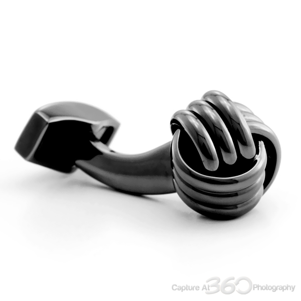 A modern twist on the well known knot cufflink. Three bars of rounded wire are wrapped around to create a ribbed knot shape. This is a timeless cufflink and the knot is always a best seller within the Tateossian collection.