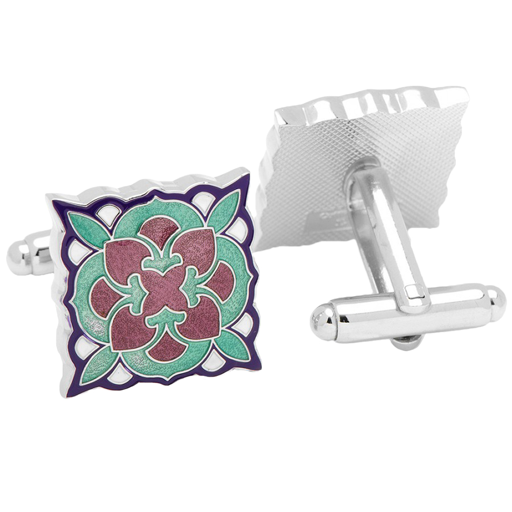 Teal and Purple Deco Bloom Cufflinks