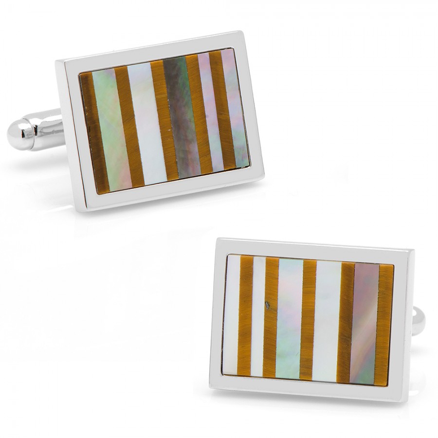 These Cufflinks would look great on your cufflinks collection. Approximately 3/4" x 5/8" Silver plated with mother of pearl and tiger's eye Bullet back closure.