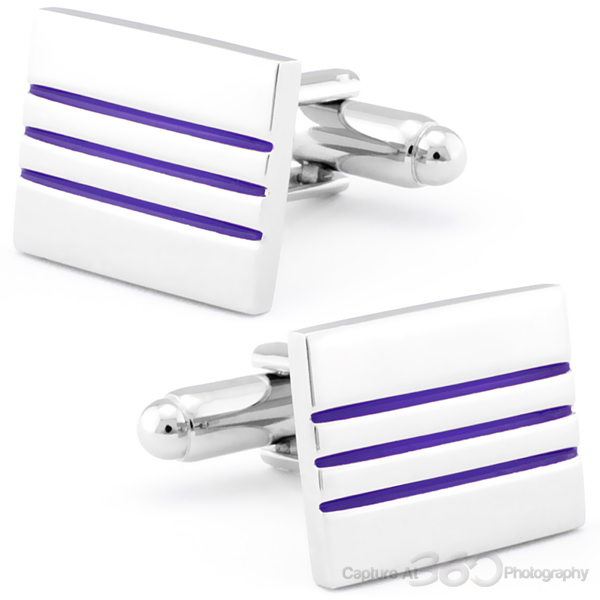 A touch of color goes a long way. These trendy yet traditional square cuff links have just enough style and flare. A touch of plum is etched delicately in each rhodium plate. It is flawless glossy finish. Hand polished. Size: 7/16" x 9/16". Presentation box included. It is personalized designer cufflink which is available for men. It comes in different shape traditional, classic, rectangular, plum, purple, striped cuff links etc.