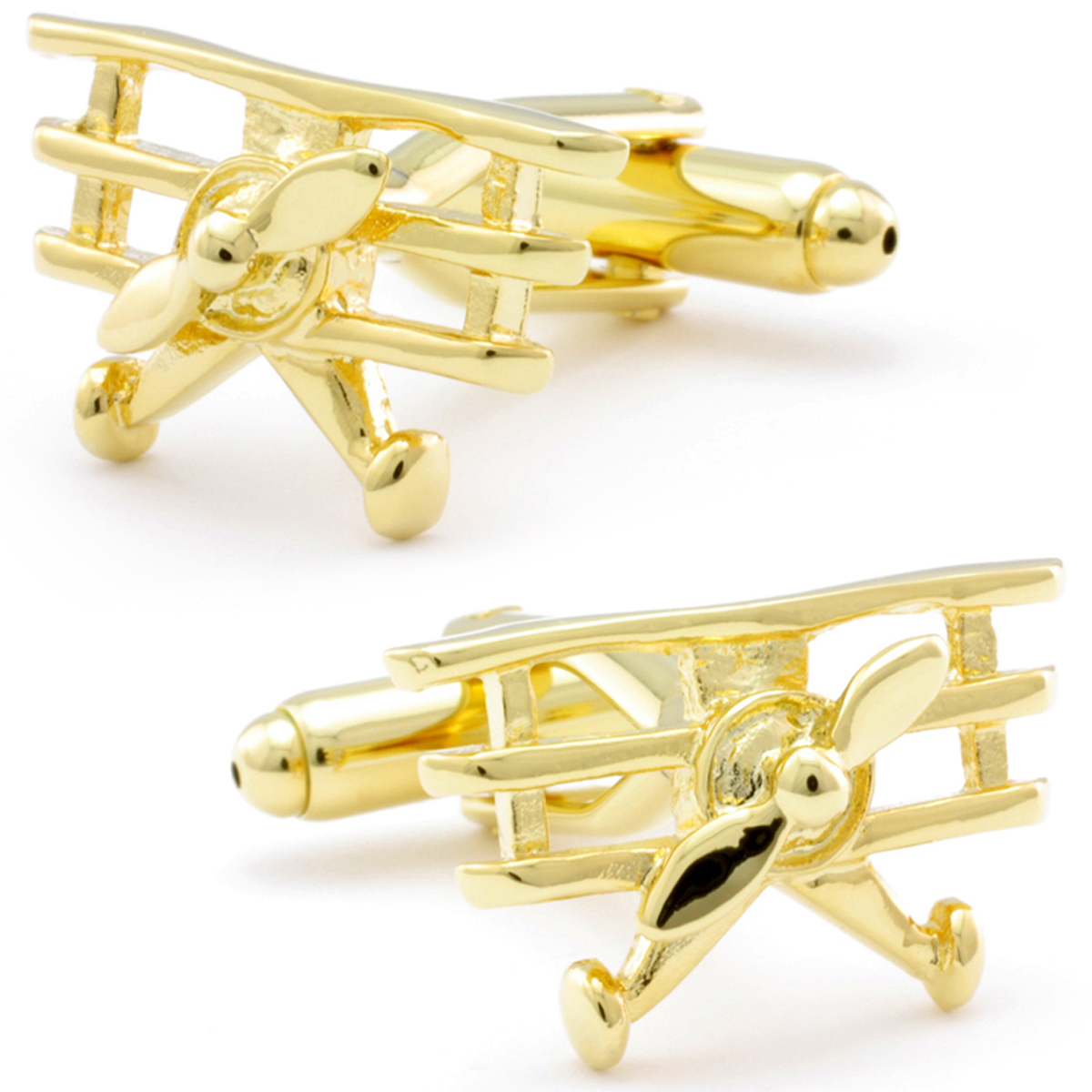 You don't need to be a pilot to fly high on these Tri-Winged Golden Airplane Cufflinks. These cufflinks are bullet backing and feature a vintage Tri-Winged Airplane with visible propeller. Great way to add a personal touch to any of your outfits.