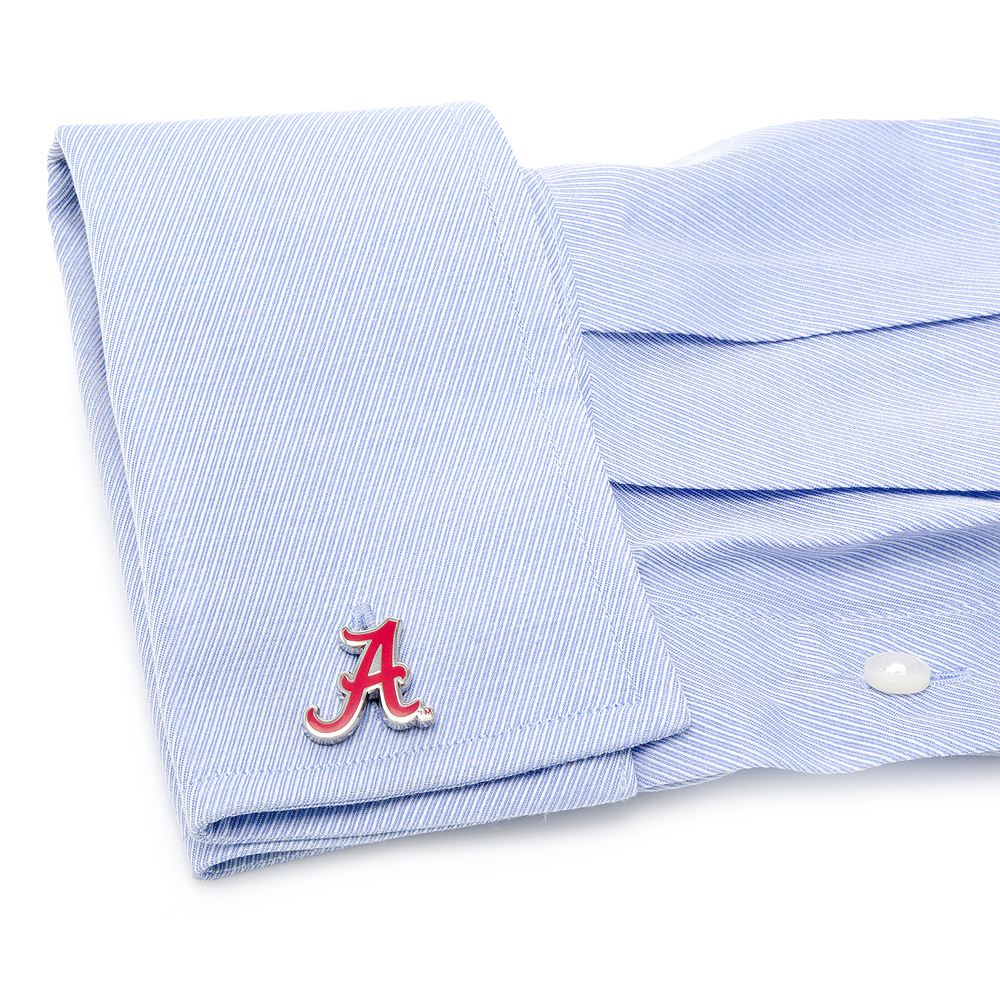 The Classic Bama "A" Symbol Is Expertly Crafted In Crimson On The Alabama Crimson Tide Cufflinks. Sing Yea Alabama In Style And Celebrate Arguably The Most Storied College Football Program In History. Don The Tide Cufflinks With Your Houndstooth Coat In Style! Approximately 3/4" x 5/8" Rhodium plated base metal with enamel Bullet back closure Officially licensed By The NCAA.