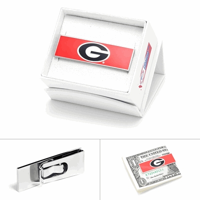 It is University of Georgia Bulldogs Money Clip. Carry your team passion wherever you go with the officially licensed University of Georgia NCAA team money clip. Boasting a heavy-duty forged 27 gram weight construction and rhodium plating, our team money clips are certain to make a loyal companion for years to come. Each team money clip is delivered wonderfully presented in the official NCAA gift box.