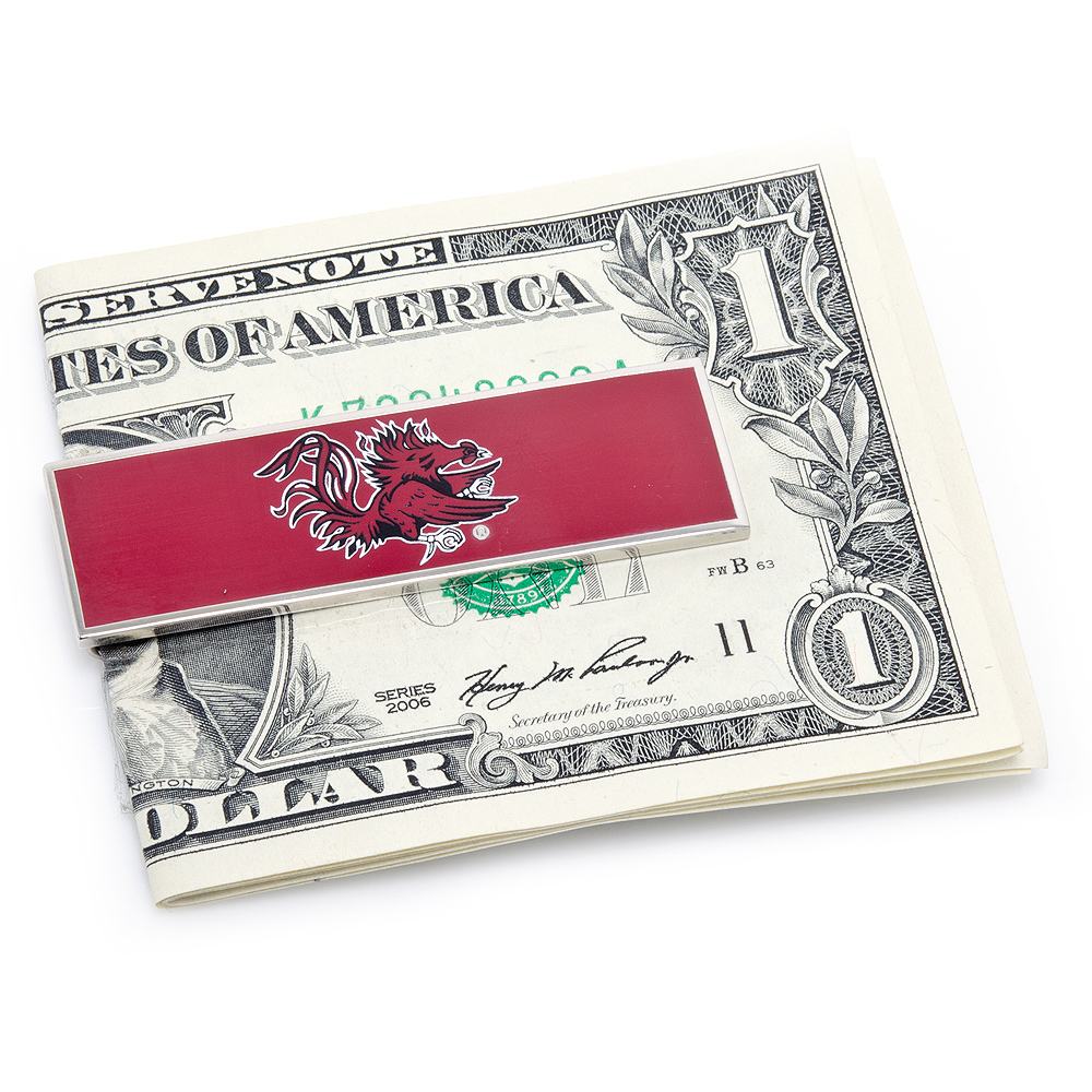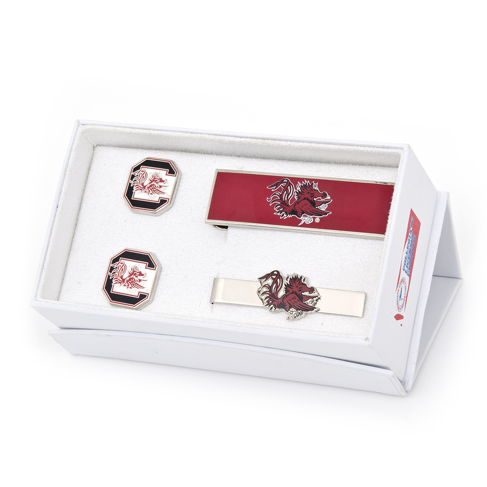 The perfect gift for the sports lover in your life, the University of South Carolina Gamecocks Gift Set features a pair of Officially Licensed Cufflinks, A Team Tie Bar And Moneyclip. Ideal for the fashionable fan, support your team in the most sophisticated of ways. Officially Licensed By NCAA.