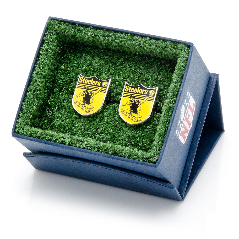 The perfect gift for Football lover or player. Approximately 3/4" x 3/4" Enamel and rhodium plated base metal Bullet back closure. Officially licensed by NFL cufflinks.
