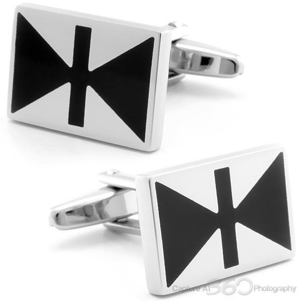 Our War of the World Cufflinks are only for the bold and beautiful gentlemen who aren't afraid to try new things. These modern cufflinks feature an interesting set of opposing triangles, tied togetherby a single, centered bracket line.