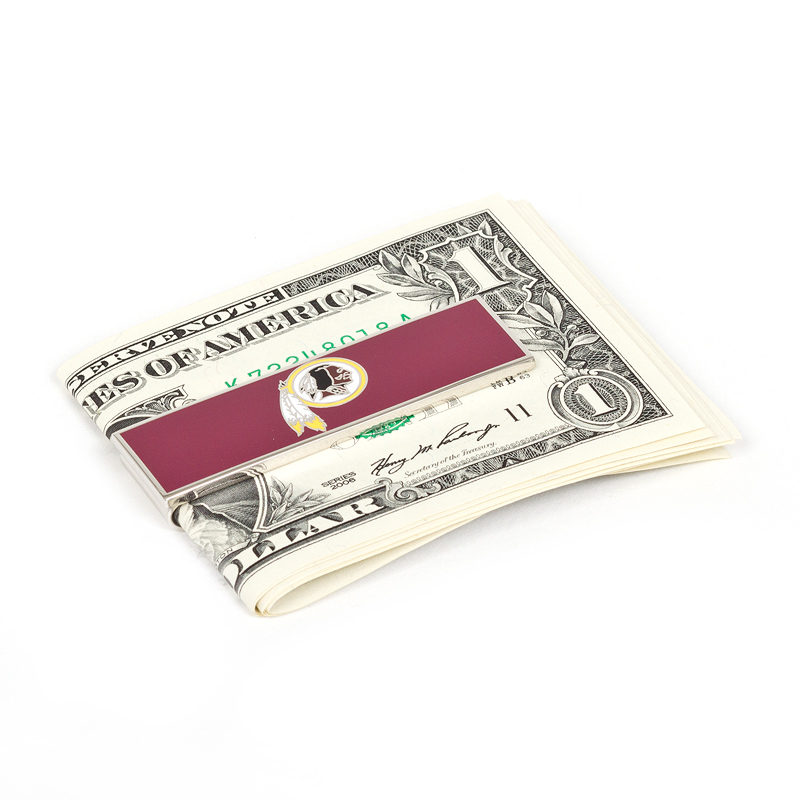 A Washington Redskins Money clip is officially licensed by the National Football League. Enamel Finish with rhodium plated silver tone accent approximately 2 3/8" x 3/4".Having 27 gram weight, 40% more than others. Double grip money security backing Presented in Official NFL gift packaging with turf interior. It is a stunning tie bar for football lover. NLF Washington Redskins Money Clip. The Washington Redskins are a Professional American football team based in the Washington, D.C. area. They are currently members of the East Division of the National Football Conference (NFC) in the National Football League (NFL).