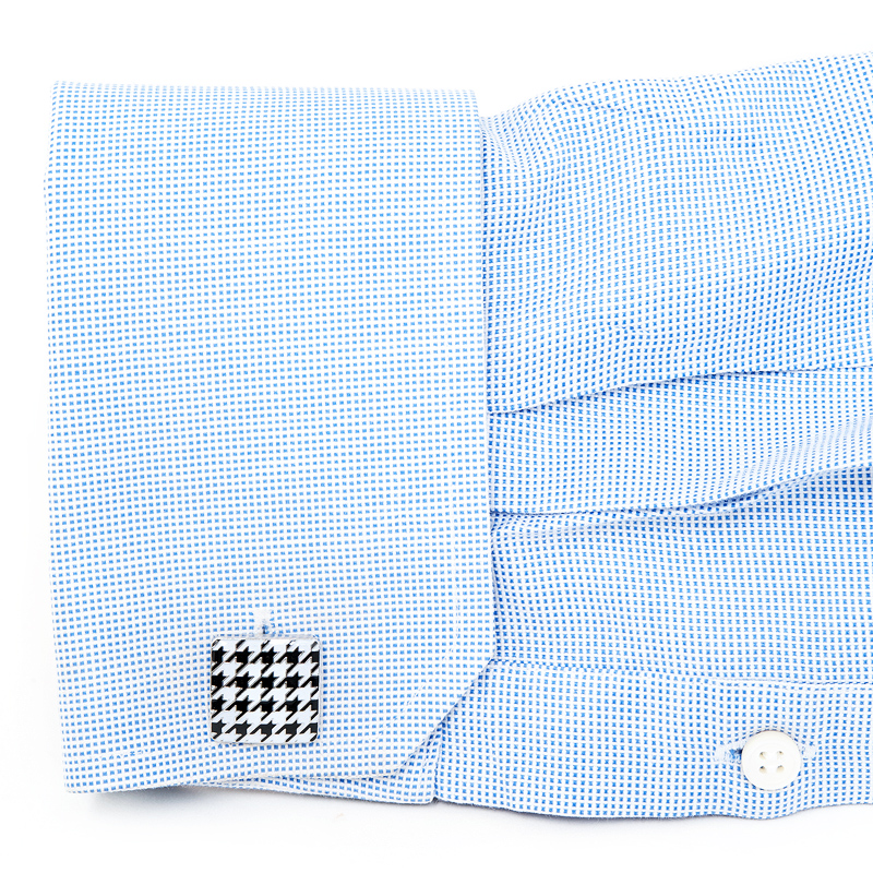 The White and Black Enamel Houndstooth Cufflinks play on the original fashion classic. Characterized by ""broken"" checks, the iconic pattern has made its way to runways all around the world. Black checks pop against a white enamel background creating a stunning visual display. The cufflinks are rhodium plated for an extra level of protection and feature a bullet backing for easy application. Cufflinks by Cufflinks, Inc. It is Designer cufflinks constructed of plated silver and enamel. Cufflinks are by Ox and Bull Trading Co.