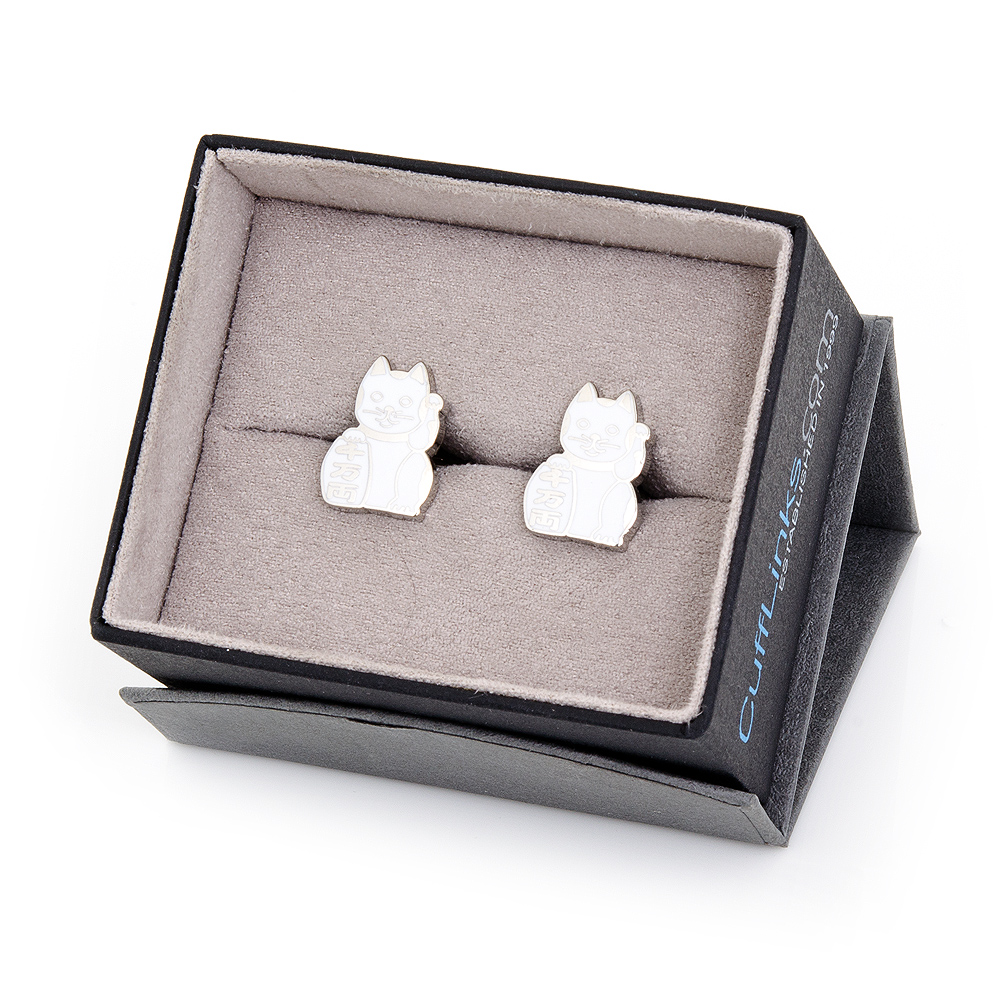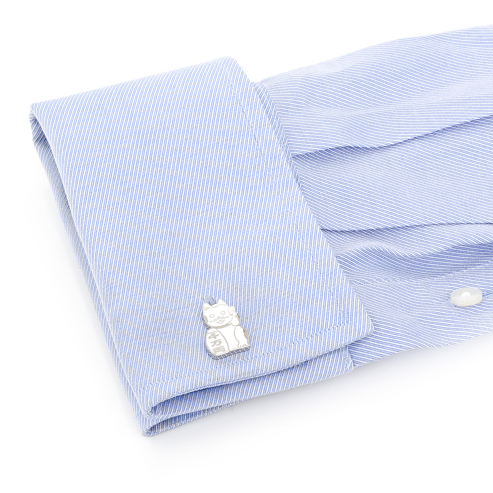 Dress up in style everyday at the office! This Lucky Cat Cufflinks is very unique cat cufflink who loves pet cats. Measure Approximately 3/4" x 1/2" in size, Plated base metal and enamel with Bullet back closure. Cufflinks by CufflinksInc.