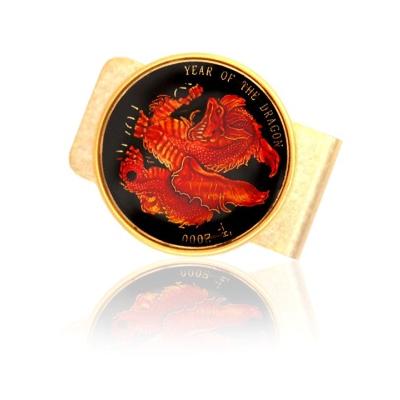 These Year of Dragon Medallion w/ Red Dragon Coin Money clip is a Chinese dragons are legendary creatures in Chinese mythology and folklore.In Chinese daily language, excellent and outstanding people are compared to the dragon while incapable people with no achievements are compared with other. People paint the dragon's shape with a horse's head and a snake's tail. Further, there are expressions as 'three joints' and 'nine resemblances of the dragon, from head to shoulder, from shoulder to breast, from breast to tail. These are hand painted money clips showcasing 2 green dragons on a black background. These are priceless to your collections.