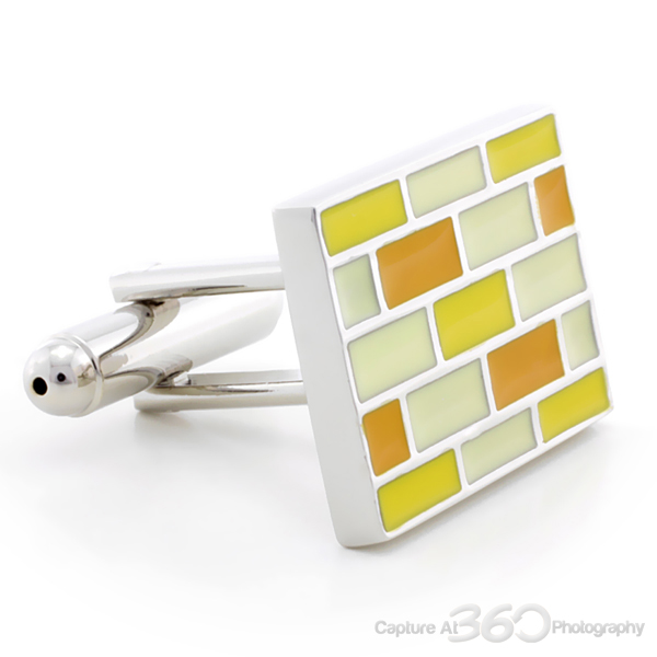 These urban cufflinks feature a series of orange and yellow bricks set against a silver backdrop. Our Yellow Brick Cufflinks bring the simplicity and style of the urban streets right to your fashion accessories.