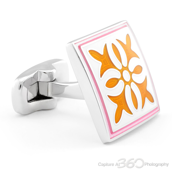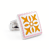 The squared cufflinks feature a silver rhodium plated base with 4 yellow blossoming flowers at each corner enhancing the exquisite design of the cufflink and guaranteed to enhance even the most sophisticated suit. Flowers are in bloom on this code of arms. Artistic and simultaneously elegant, these cufflinks are an appropriate addition to your collection.